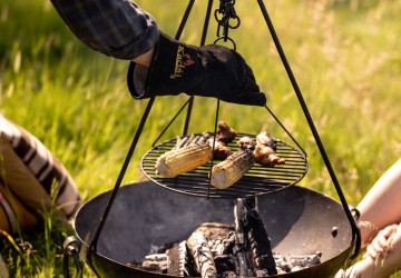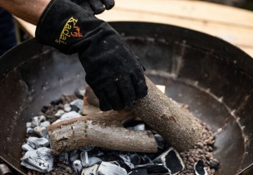 The Kadai Gloves are made from thick, heat resistant leather perfect for use as fire safety, protective gloves. They are essential for protecting your hands from the heat of the fire, and are ideal durable gloves for moving hot pans and equipment around the grill.